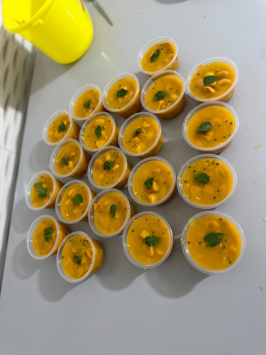 Délectez-vous avec ces délicieux petits desserts à la mangue, parfaits pour toute occasion. Chaque pot est garni de feuilles fraîches de menthe offrant une explosion de saveurs tropicales. Idéal pour les fêtes ou comme douce tentation après le dîner.