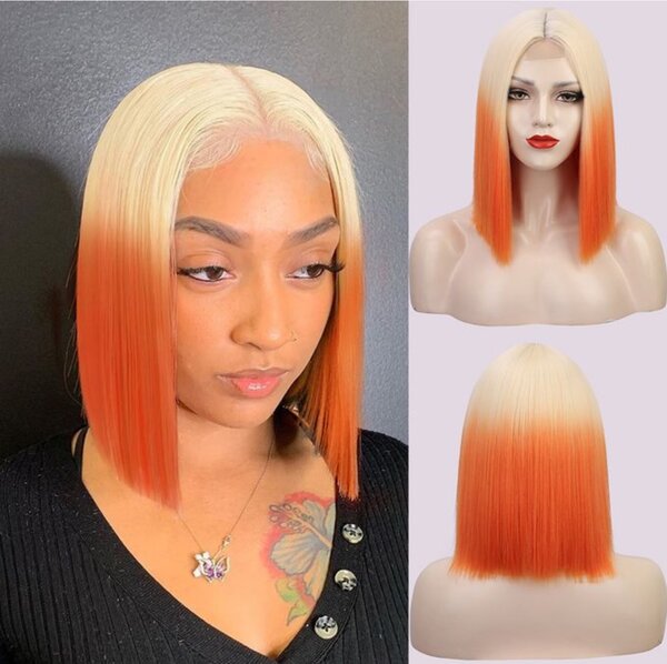 Short Synthetic Wigs for Women Straight Bob Middle Part Cop