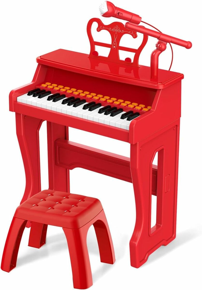 Ce piano électronique rouge pour enfants est idéal pour éveiller la passion musicale. Avec ses 37 touches adaptées aux petites mains et un microphone inclus, il offre une expérience immersive grâce à son effet sonore 3D. Un choix parfait pour développer la créativité musicale des enfants à la maison.