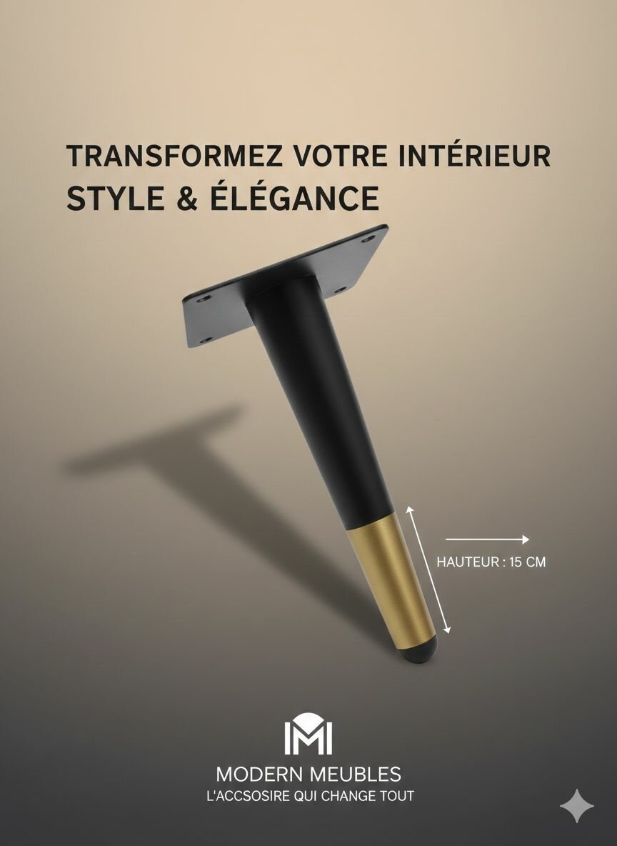 Ajoutez une touche d'élégance et de modernité à votre intérieur avec ce pied de meuble design de 15 cm. Parfait pour rehausser le style de votre canapé ou table basse, ce pied offre stabilité et esthétique grâce à sa finition professionnelle. Idéal pour les amateurs de décoration soignée.