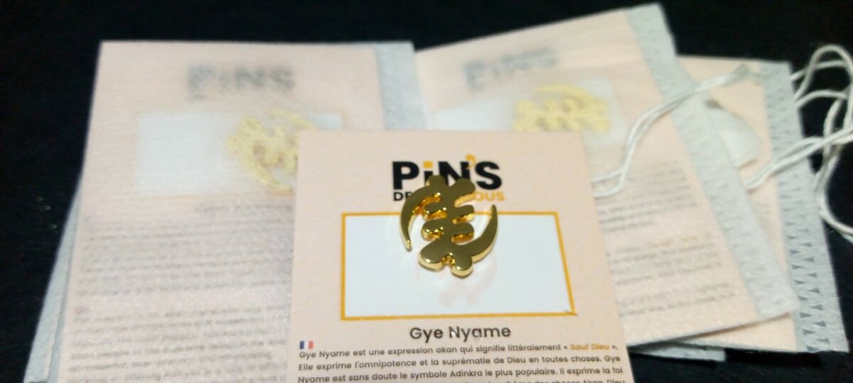 Affichez votre élégance avec ce pin "Gye Nyame" doré, symbole de protection suprême et de spiritualité. Idéal pour costume ou veste, il ajoute une touche sophistiquée à votre style quotidien. Un cadeau parfait pour exprimer la fierté culturelle. Fabriqué avec un émail de haute qualité, durable et brillant.