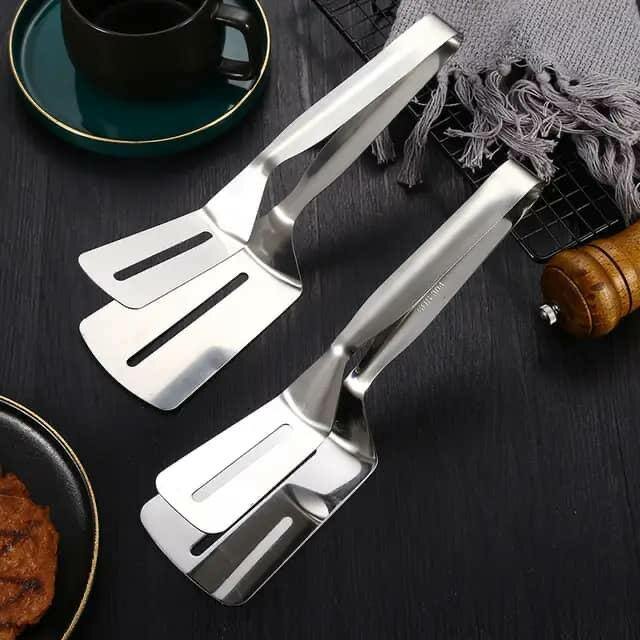 Taille:26.5cm * 7.4cm Matériel: Acier inoxydable 304 Poids:160g Fonctionnalité: Combinaison pince, retourneur et spatule en acier inoxydable Multifonction pour la friture, le gril, la cuisson Paquet: Sac d'opp