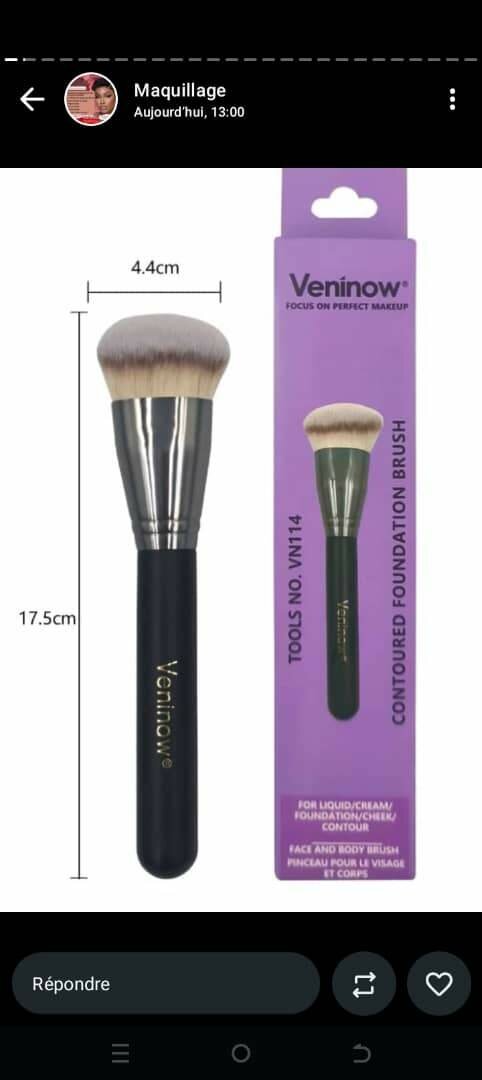 Le pinceau fond de teint Veninow, idéal pour une application uniforme et sans traces, convient aux produits liquides et crémeux. Son design ergonomique assure une prise en main confortable et précise.