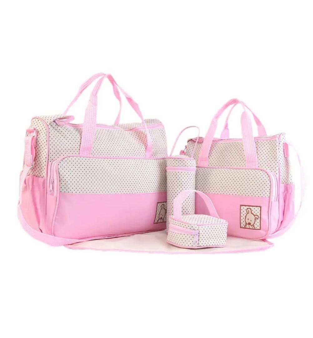 Spacious and stylish pink diaper bag set including a large bag, medium bag, bottle holder, and changing mat. Perfect for organized and easy outings with your baby. Durable and convenient for on-the-go parents. Theres is 4 collor