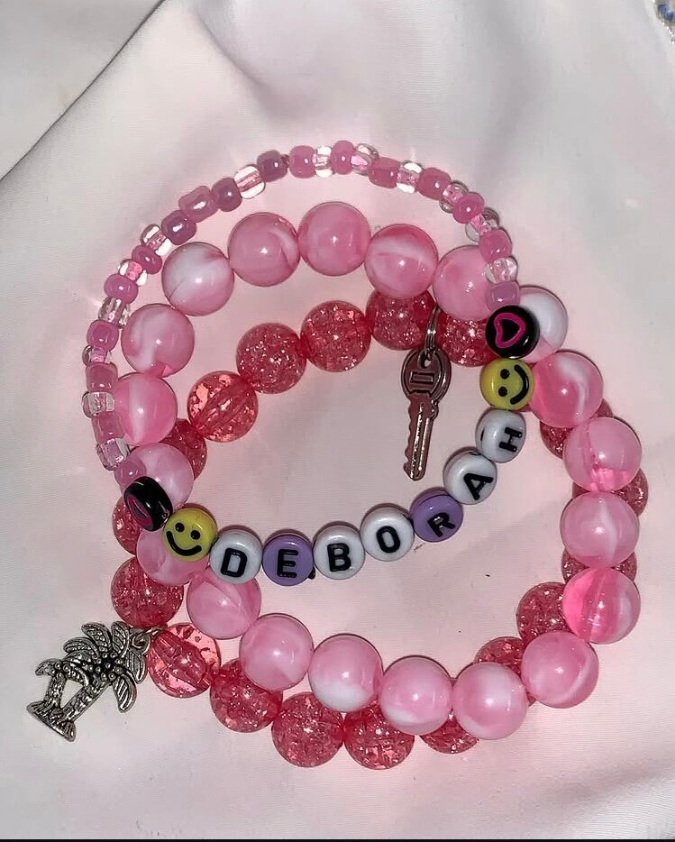 Enhance your style with this charming set of pink pearl bracelets. Buy one personalized bracelet and get two free charming bracelets and free shipping