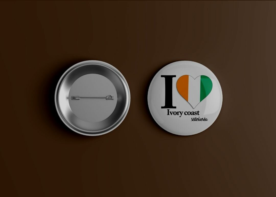 Découvrez nos pin's ; accessoire decoratif pour un Don aux touristes ; le 7 Août et autre représentation discrète avec notre couleur nationale. A chacun son <<I Love Ivory Coast >>