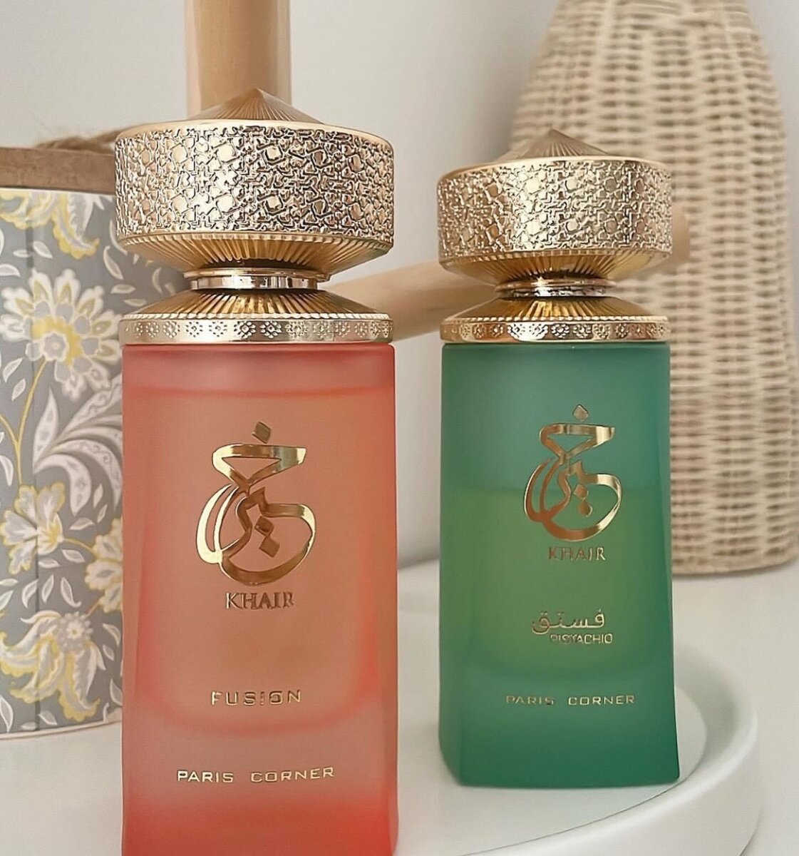 Khaïr Pistachio et khaïr Fusion sont 2 parfums classes , sophistiqué. ils sont tous les 2 gourmand sauf que le Pistachio est un gourmand frais vanillé et le fusion un gourmand fruité . Ils sont excellent . Nhésitez surtout pas .