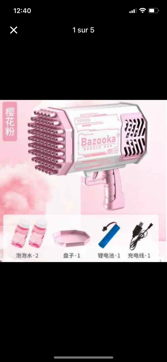 Découvrez le pistolet à bulles rose aux 69 trous, idéal pour créer une ambiance festive. Rechargeable et facile à utiliser, il est parfait pour les fêtes d'enfants ou les événements en plein air. Inclut solution à bulles et câble de chargement.
