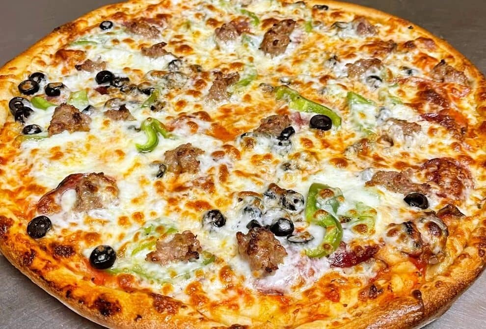 Savourez notre pizza gourmet garnie d'olives noires, poivrons frais et viande juteuse. Parfaite pour un repas convivial ou une soirée entre amis. Profitez de ses saveurs uniques et de son fromage fondant. Idéale pour satisfaire toutes vos envies gourmandes !