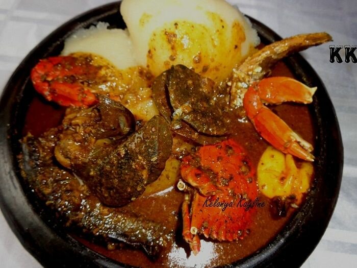 Découvrez un plat authentique de fufu accompagné d'une soupe de gombo et crabe savoureuse. Parfait pour les gourmets en quête de saveurs exotiques, ce repas combine harmonieusement des fruits de mer frais avec une soupe délicieusement épicée. Idéal pour un dîner spécial ou un repas en famille.
