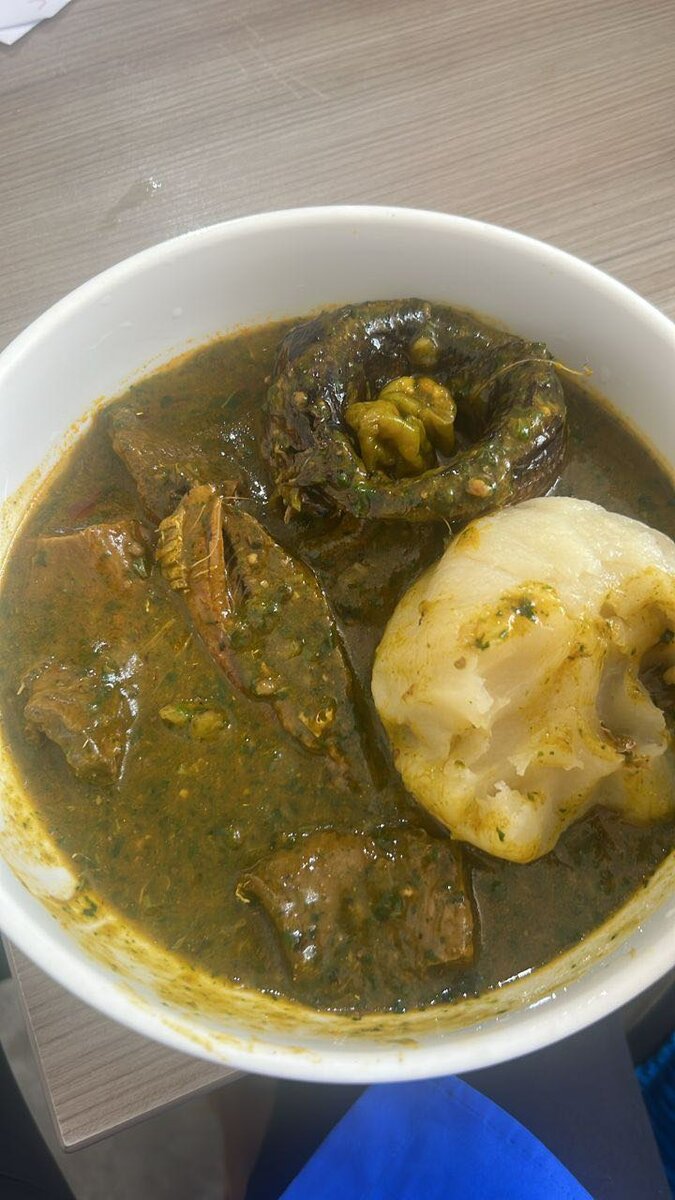 La sauce graine et le kplala accompagnée de placali . Une boule et tripe et kplo