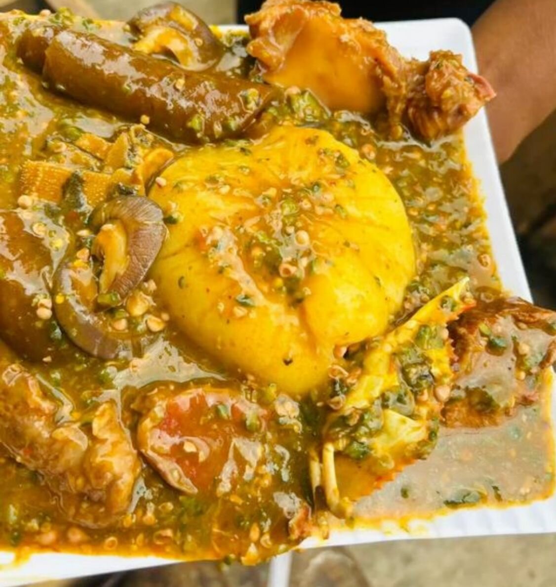 Découvrez l'expérience ultime de la cuisine africaine avec notre placali accompagné d'une soupe kopê riche et épicée aux fruits de mer.