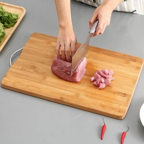 Découvrez la planche en bambou 100% organique, ultra épaisse et légère. Équipée d'une poignée en acier inoxydable pour un transport facile, Votre cuisine sans stress. Idéale pour toutes vos préparations culinaires.