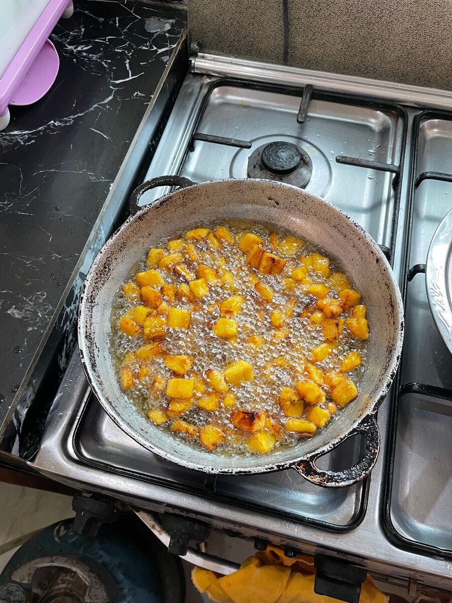 Savourez ces plantains frits dorés et croustillants, parfaits pour accompagner vos plats préférés. Faciles à préparer, ces morceaux sucrés et savoureux apportent une touche exotique et réconfortante à votre cuisine. Idéal pour les repas en famille ou entre amis, ce plat vous transportera vers des saveurs exotiques. Essayez-les aujourd'hui pour une expérience gustative unique et délicieuse!