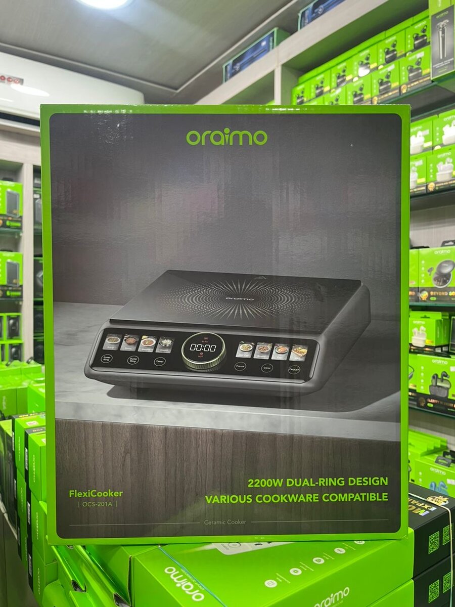 Découvrez la plaque à induction Oriamo 2200W avec design à double anneau, compatible avec divers ustensiles de cuisine. Idéale pour une cuisson rapide et efficace, elle s’intègre parfaitement dans toute cuisine moderne. Profitez d'une utilisation simplifiée grâce à ses commandes intuitives et numériques.