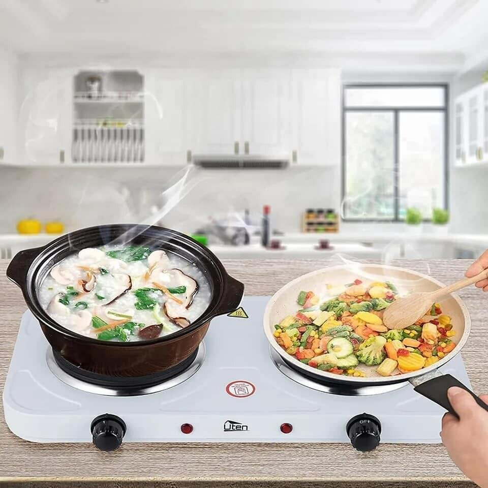 ️Plaque chauffantes électriques 200W, double, Portable, de comptoir, pour la cuisine, dortoir, bureau, blanc. Prix : 13000Fr