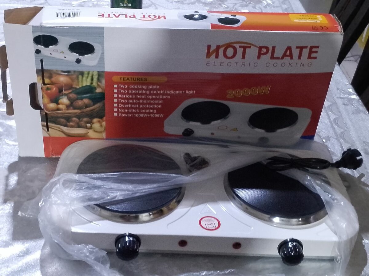 Profitez d'une cuisson rapide avec cette plaque de cuisson électrique double haute puissance. Idéale pour les cuisines compactes, elle est équipée de deux foyers, d'un témoin lumineux et d'un thermostat ajustable. Parfaite pour un usage domestique ou en voyage, elle assure une efficacité et une sécurité optimales grâce à son design stable et ses matériaux durables. Simplifiez vos préparations culinaires dès maintenant!