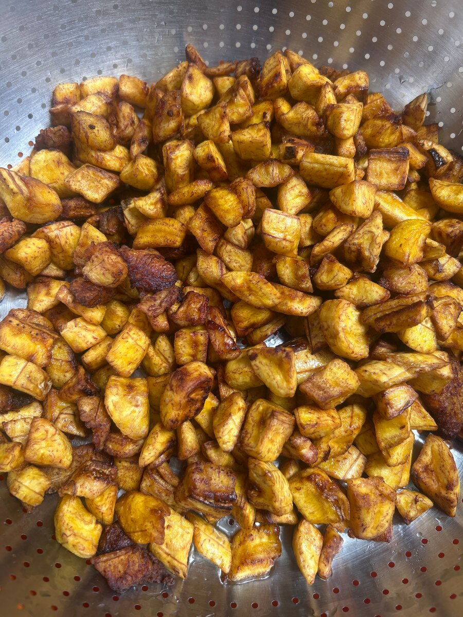 Savourez un délicieux combo de plantains frits dorés et de morceaux de poulet grillé richement assaisonnés. Parfait pour les repas en famille et les fêtes. Goût exotique et réconfortant garanti!