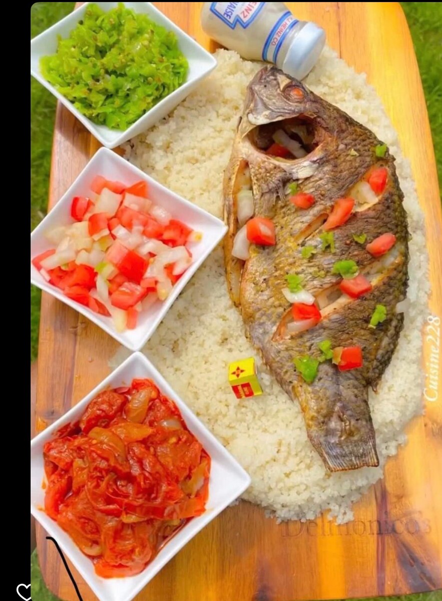 Découvrez notre délicieux plat de poisson grillé africain, accompagné de savoureuses bananes plantains et de riz aromatisé. Parfait pour un repas convivial ou une occasion spéciale. Profitez d'une explosion de saveurs exotiques !