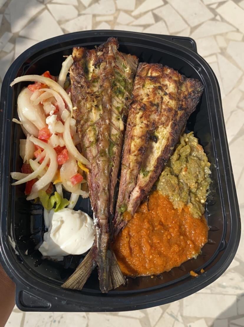 Dégustez ce délicieux plat de poisson grillé accompagné de légumes frais et de sauces savoureuses. Parfait pour un repas nutritif et équilibré, ce plat séduira vos papilles. Idéal pour les amateurs de poissons et de cuisine saine. Profitez d'un goût authentique et épicé à chaque bouchée.
