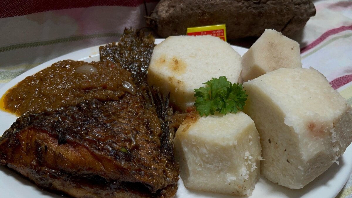 Découvrez ce savoureux plat de poisson grillé accompagné d'igname tendre et d'une sauce épicée. Parfait pour un repas exotique et léger, idéal pour les amateurs de cuisine afro-caribéenne. L'association de l'igname moelleuse avec le poisson frais et grillé vous promet un véritable voyage culinaire. Convient aux déjeuners et aux dîners. Impressionnez vos invités avec ce plat authentique et plein de saveurs.