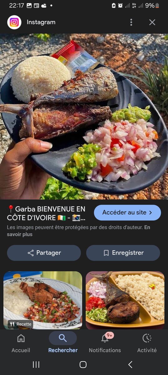 Plat ivoirien Garba