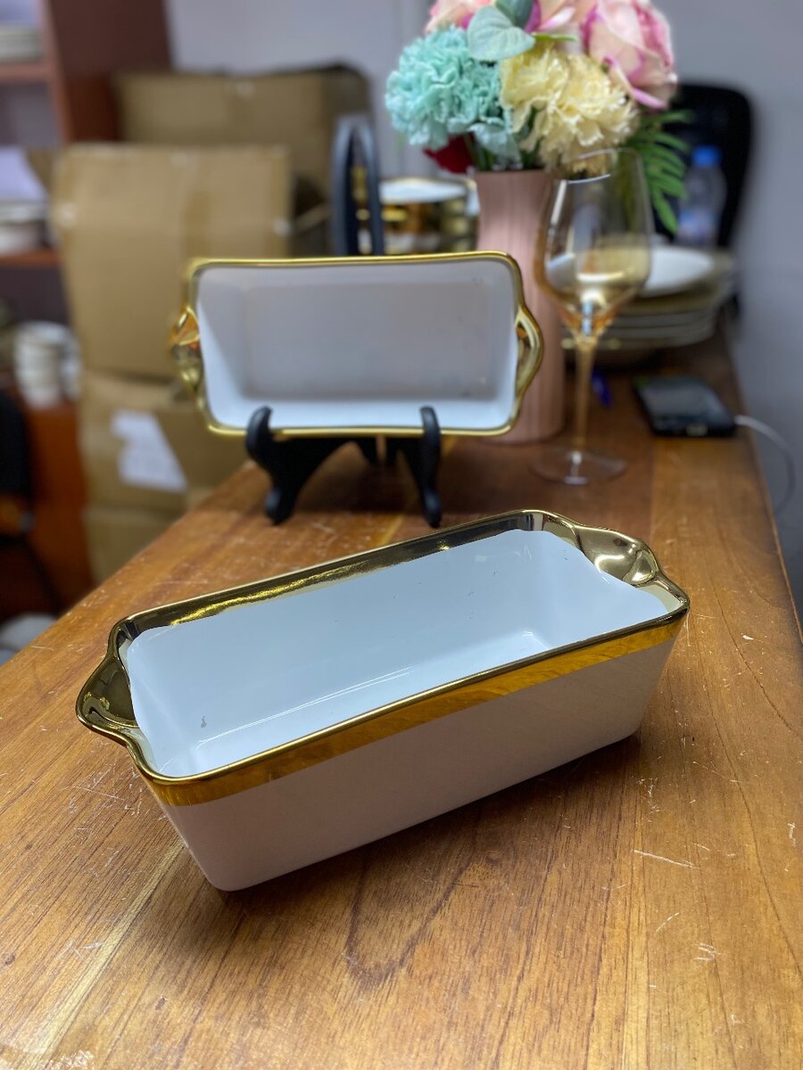 Découvrez notre magnifique plat en céramique blanc avec des bords dorés élégants. Idéal pour sublimer vos repas de fête ou apportez une touche raffinée à vos dîners quotidiens. Parfait pour servir des plats somptueux et impressionner vos invités.