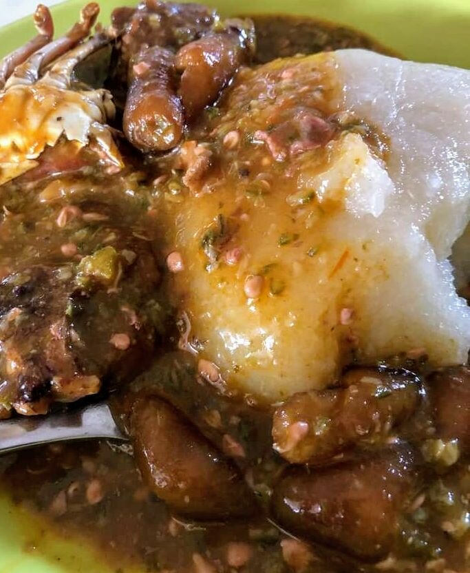 Une grosse boule de placali+4 pklo+poisson ou crabe