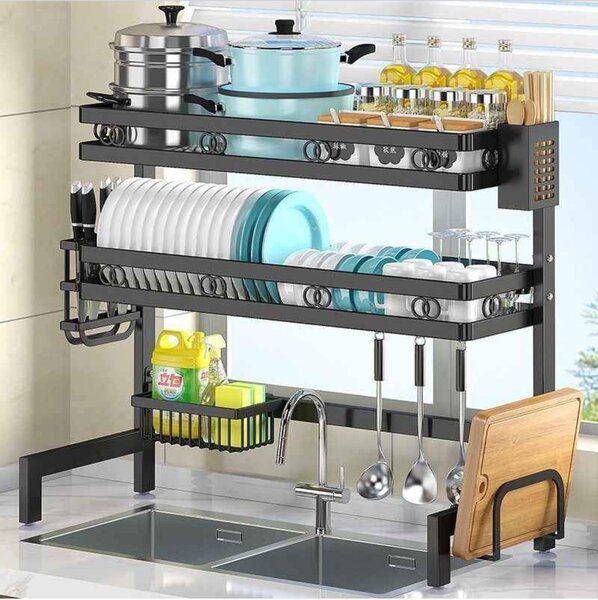 Over the sink plate rack with glass cover Double and single available Black in colour