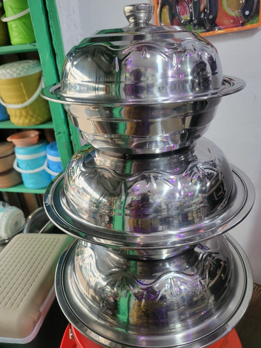 Ensemble 3 plateaux avec couvercle bombé de 20cm,36cm et 40 cm pour les repas en famille