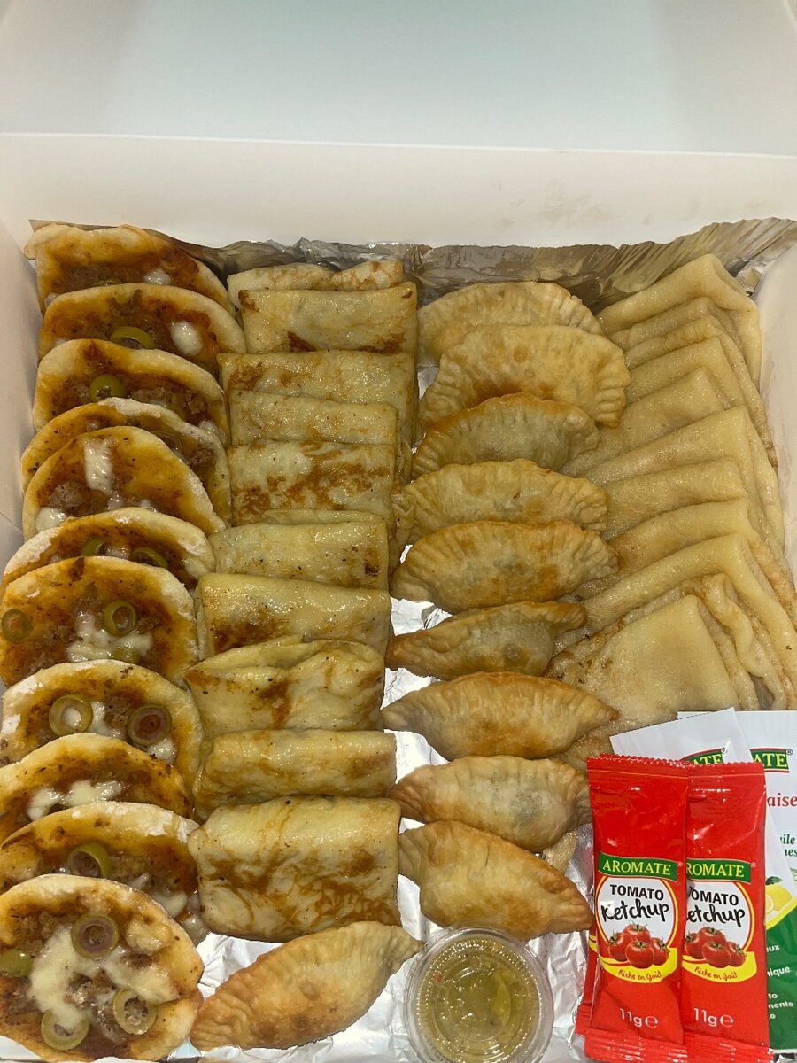Découvrez un assortiment de plats africains authentiques, comprenant des boules de fufu avec un savoureux poisson en sauce et un assortiment de snacks afro-inspirés préparés avec soin. Idéal pour les amateurs de cuisine exotique et les moments de partage convivial.