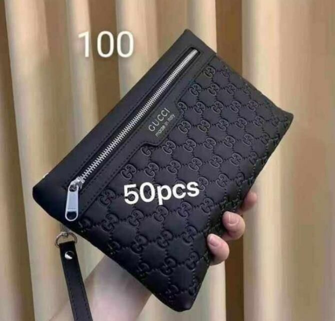 Élégante pochette en cuir noir pour hommes, parfaite pour un look chic et moderne. Idéale pour ranger vos essentiels.