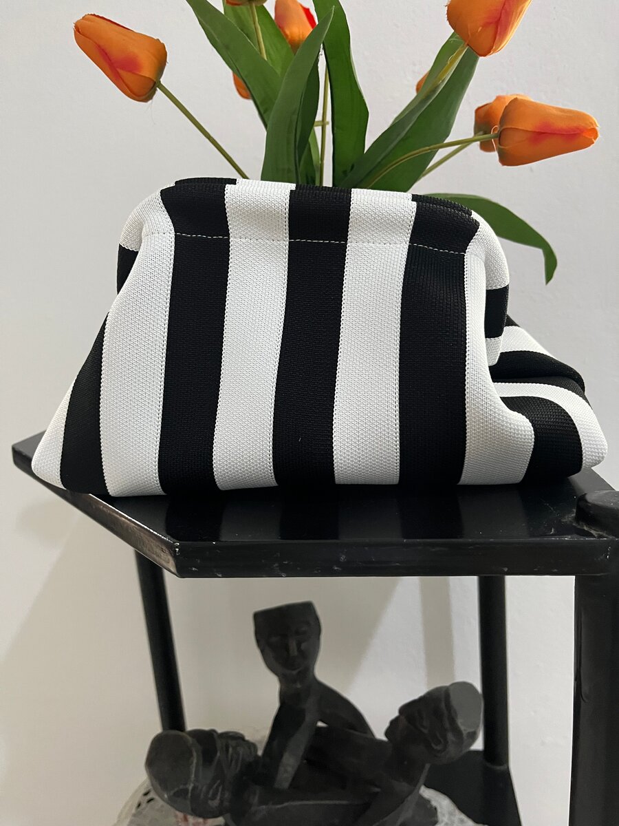 Découvrez notre pochette sophistiquée à rayures, parfaite pour ajouter une touche chic à votre tenue. Idéale pour une sortie ou un événement spécial, elle offre à la fois style et praticité avec sa forme spacieuse pour vos essentiels. Un accessoire incontournable pour toute garde-robe moderne.