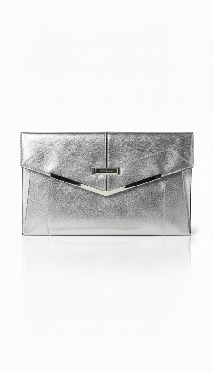 Cette pochette argentée en cuir véritable est un choix parfait pour les soirées glamour et les événements élégants.