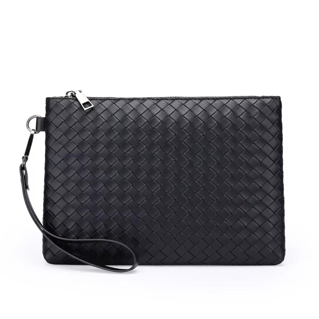 Découvrez l'élégance intemporelle de notre pochette en cuir tressé. Parfaite pour garder vos essentiels à portée de main, que ce soit pour le bureau ou une sortie en ville. Son design sophistiqué et sa dragonne pratique en font un choix idéal pour toute occasion.