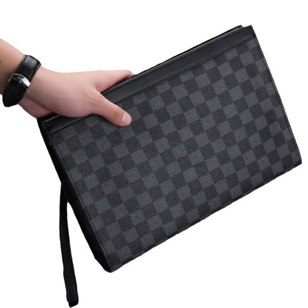 Pochette en cuir à carreaux