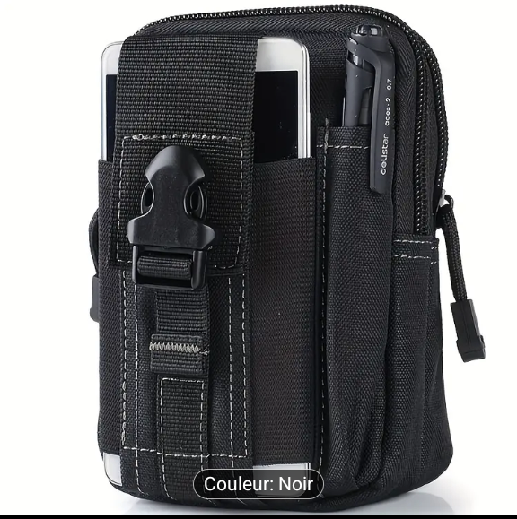 Cette pochette tactique noire est idéale pour les activités de plein air. Elle offre un rangement sécurisé pour votre téléphone, lampe de poche et stylo. Fabriquée en matériau durable, elle est parfaite pour les randonnées, le camping ou le travail sur le terrain. Compacte et légère, elle s'attache facilement à votre ceinture.