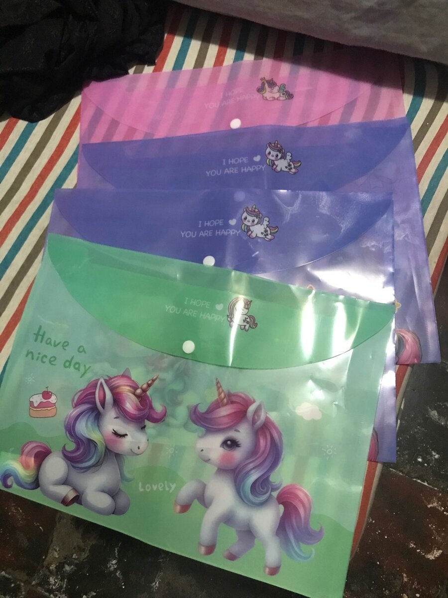 Pochettes en plastique colorées et imprimées, idéales pour organiser des documents au bureau ou à l'école. Robustes et réutilisables, elles protègent vos papiers tout en ajoutant une touche de fantaisie à votre quotidien.