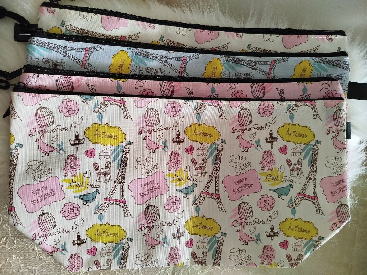 Ensemble de pochettes élégantes et pratiques avec motifs parisiens colorés. Parfaites pour organiser vos essentiels de voyage ou de maquillage. Style unique et audacieux, idéal pour les amateurs de Paris. Conception durable et fermeture éclair facile.