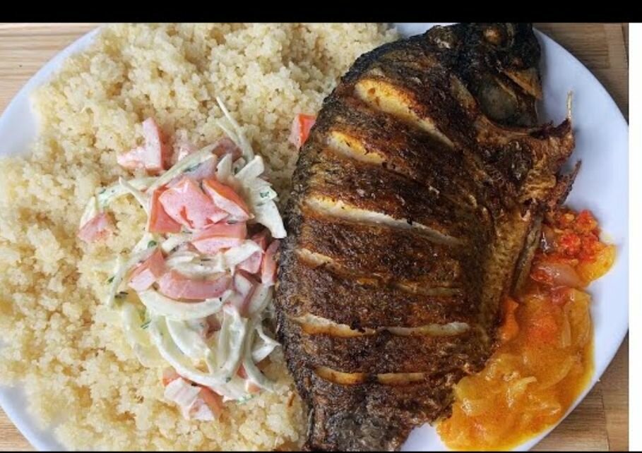 Poisson braisé et attieké