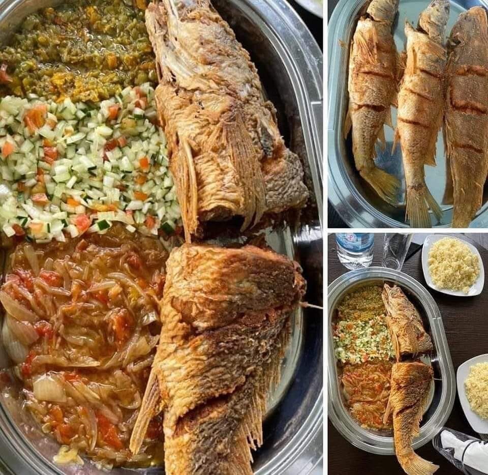 Savourez un délicieux poisson frit accompagné d'une variété de légumes frais et de sauces épicées. Idéal pour un repas convivial en famille ou entre amis.