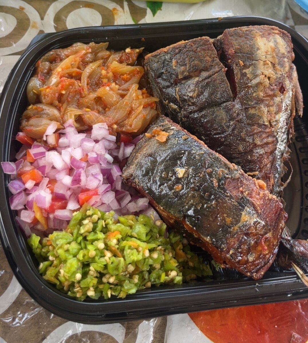 Repas de poisson fumé africain