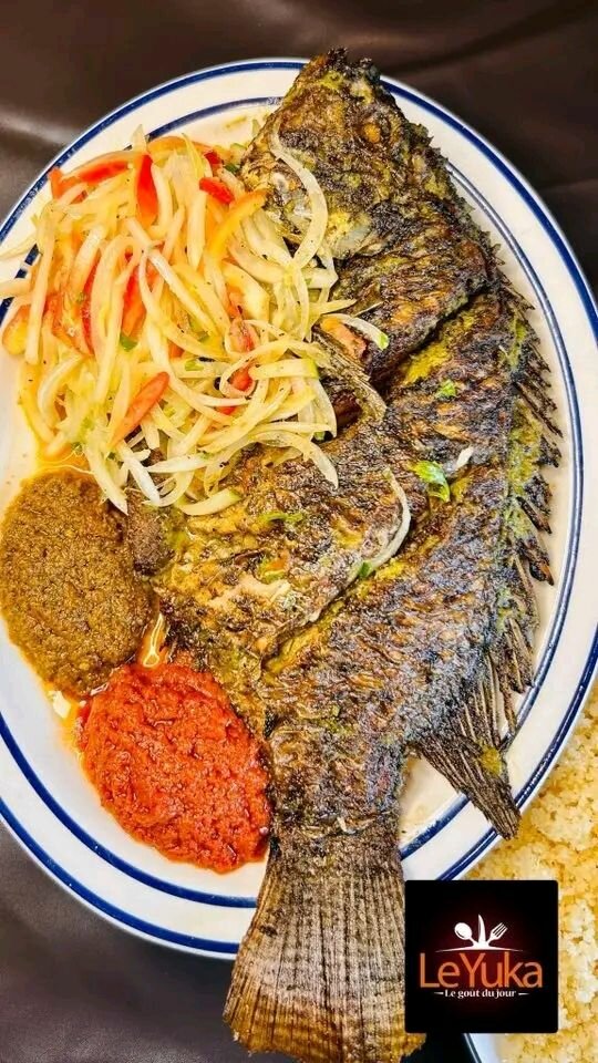 Savourez notre délicieux poisson grillé, accompagné d'une salade croquante et de sauces épicées. Idéal pour un repas gourmand et épicé, ce plat apporte une explosion de saveurs avec des légumes frais et des épices authentiques. Parfait pour les amateurs de cuisine exotique.