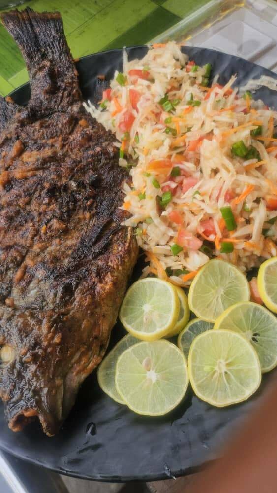 Savourez notre poisson grillé parfaitement assaisonné, accompagné d'un riz parfumé aux légumes croquants. Parfait pour un dîner exotique.