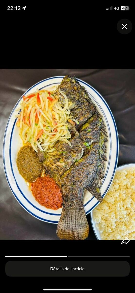 Découvrez ce délice de poisson grillé, idéal pour un dîner spécial. Servi avec une variété de sauces et légumes, il ravira vos papilles avec son goût authentique. Parfait pour les amateurs de fruits de mer!