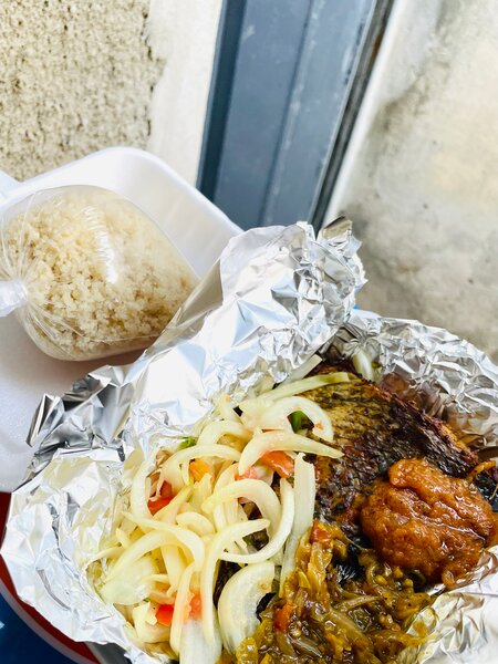 Poisson la braise accompagné digname bouillie viens te régaler toi même tu vas témoigner
