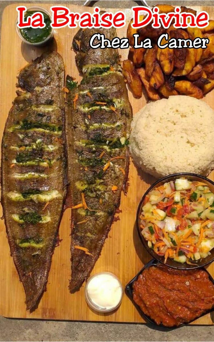 Poisson Sole Braisée Assaisonnée Aux Épices Locales Du Cameroun.
