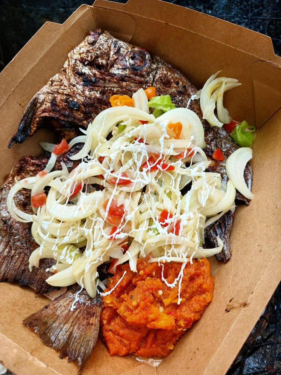 Savourez notre poisson st pierre braisé accompagné d'oignons croquants et de sauce tomate. Parfait pour un repas rapide et délicieux à emporter!