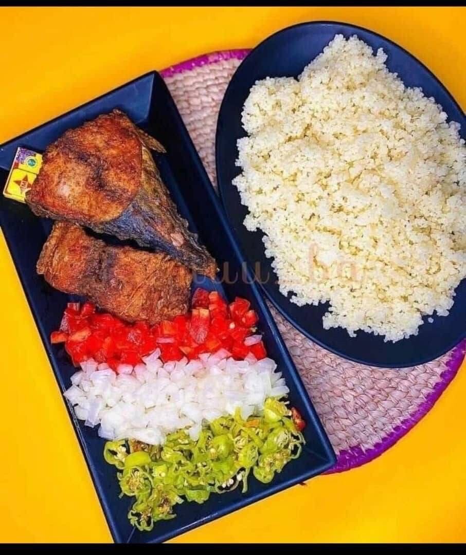 Plat de couscous et poisson frit