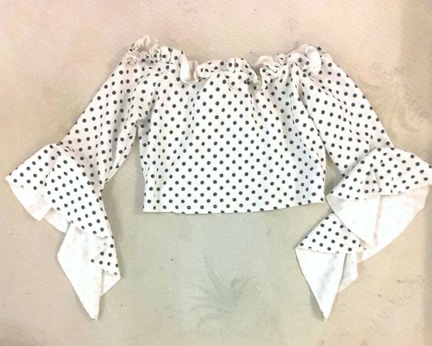 Elevate your wardrobe with this chic polka dot off-shoulder top. Perfect for casual outings or a stylish evening, this top features elegant ruffled sleeves for a feminine touch. Made from comfortable, breathable fabric. Pair it with your favorite jeans or a skirt for a fashionable look!